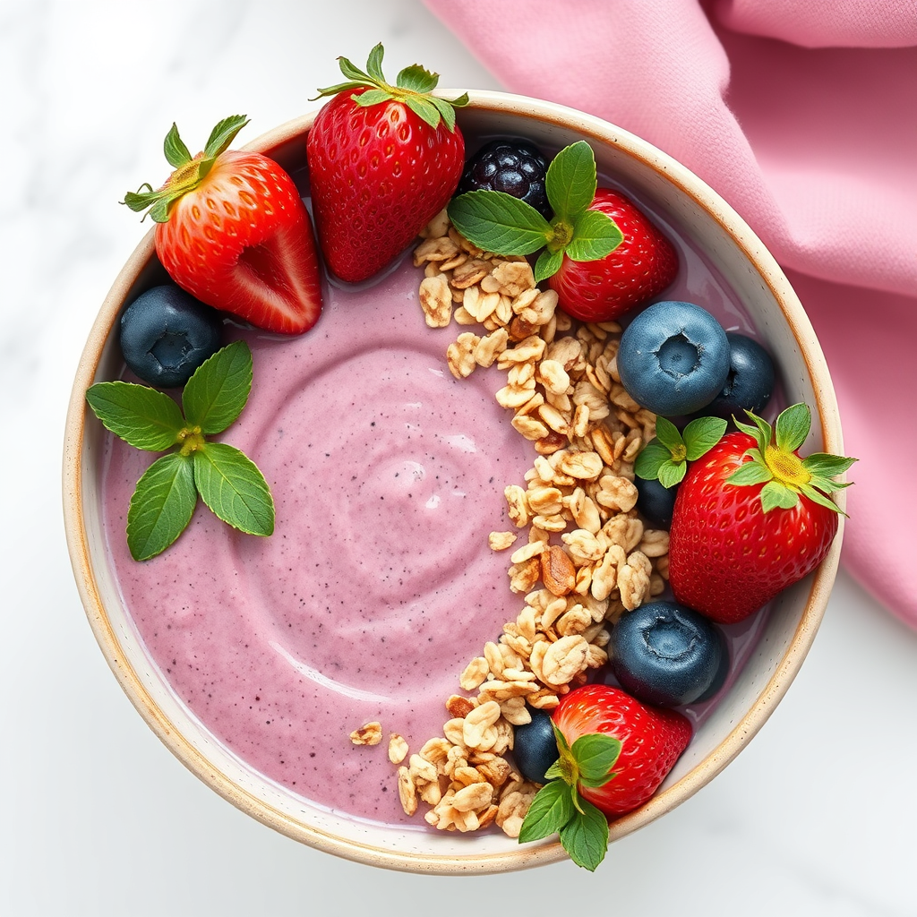 Smoothie Bowl With Fresh Berries And Granola Breakfast Ae...