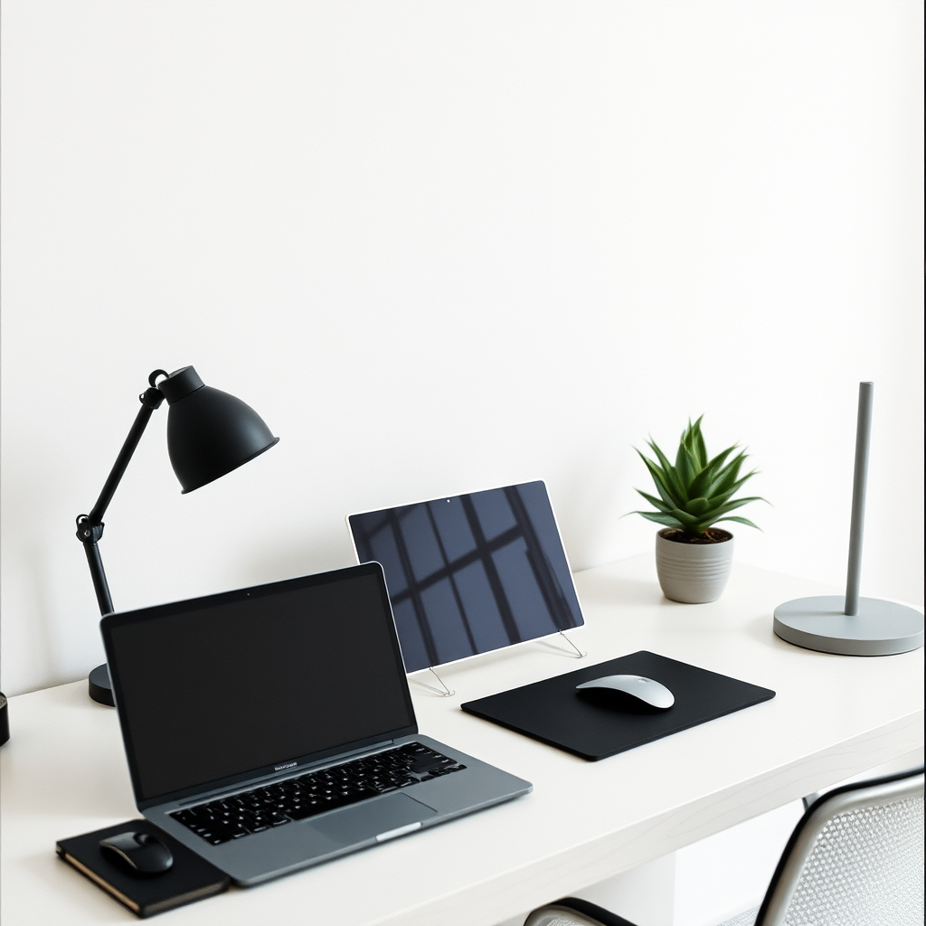 Clean Desk Setup With Modern Laptop And Plant Minimal