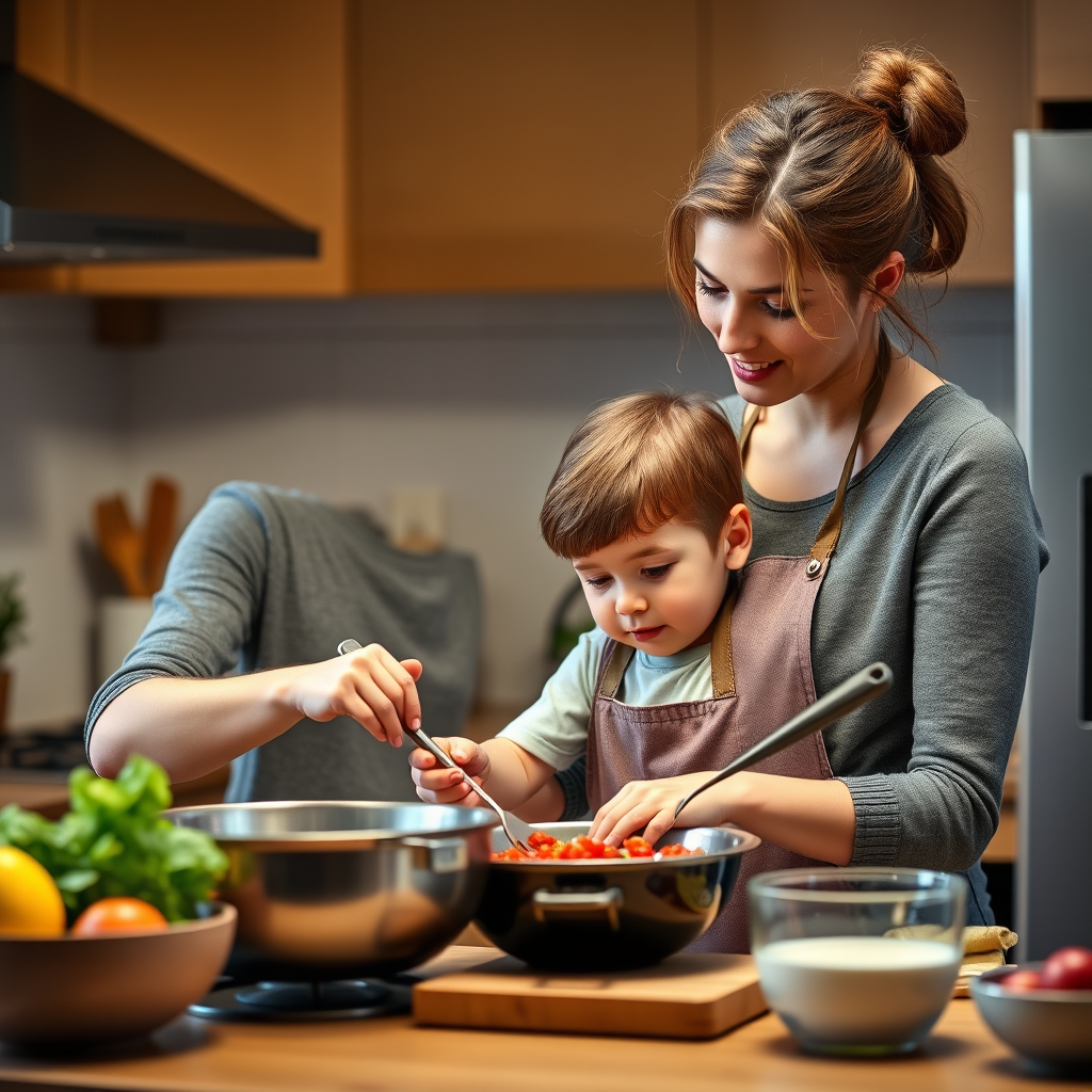 Mother And Child Cooking Together In Kitchen Bonding Moment
